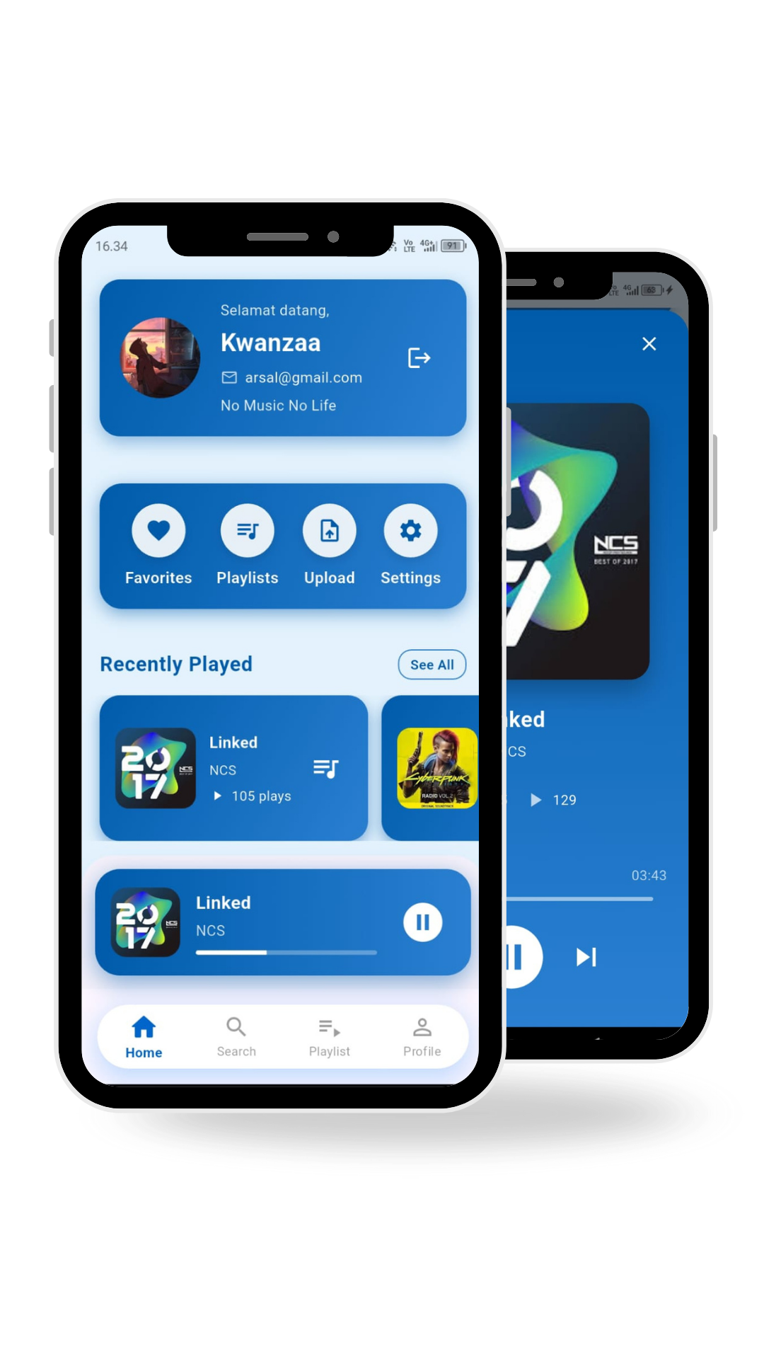 Atur playlist, genre favorit, dan rekomendasi lagu sesuai selera musik kamu.